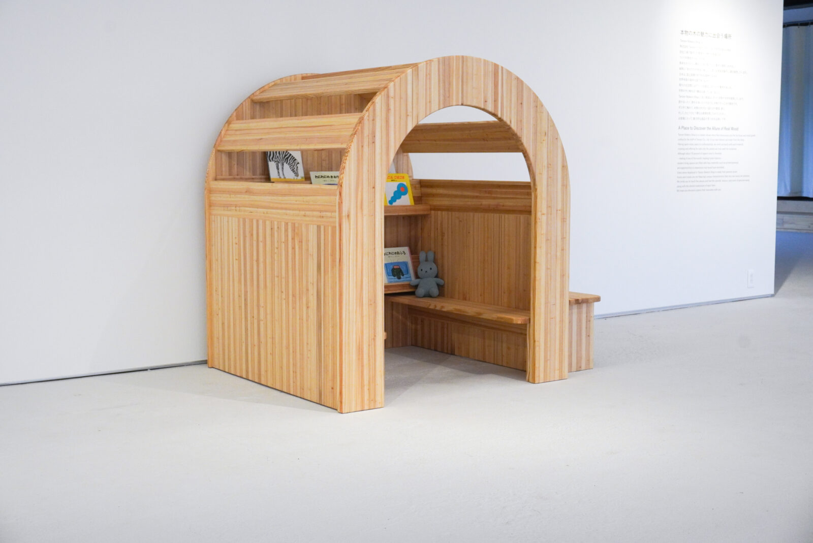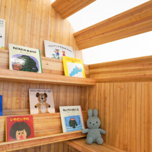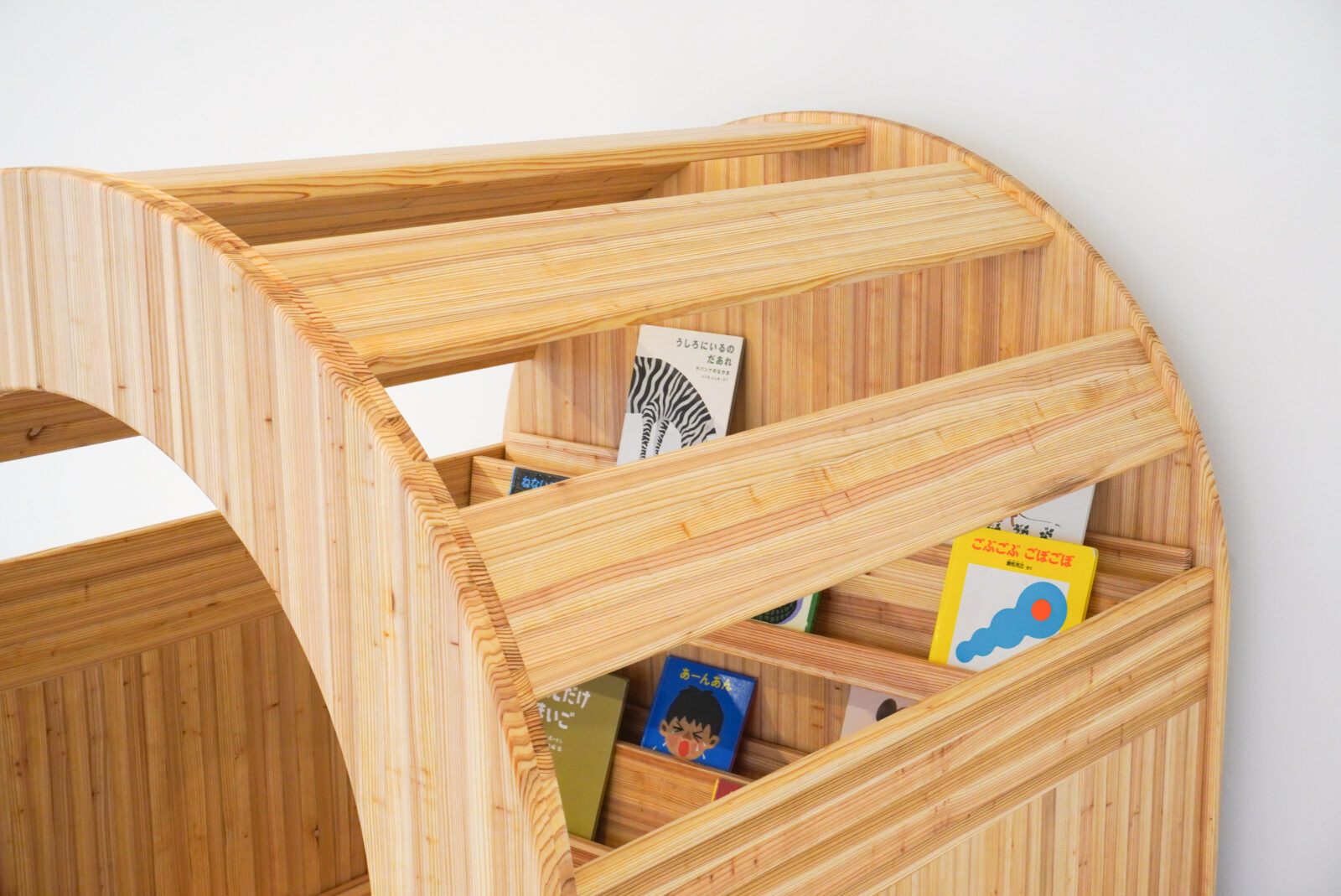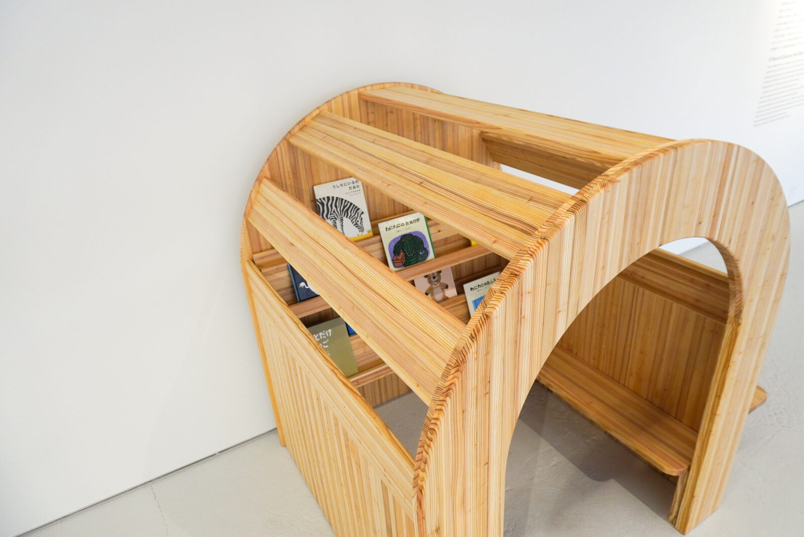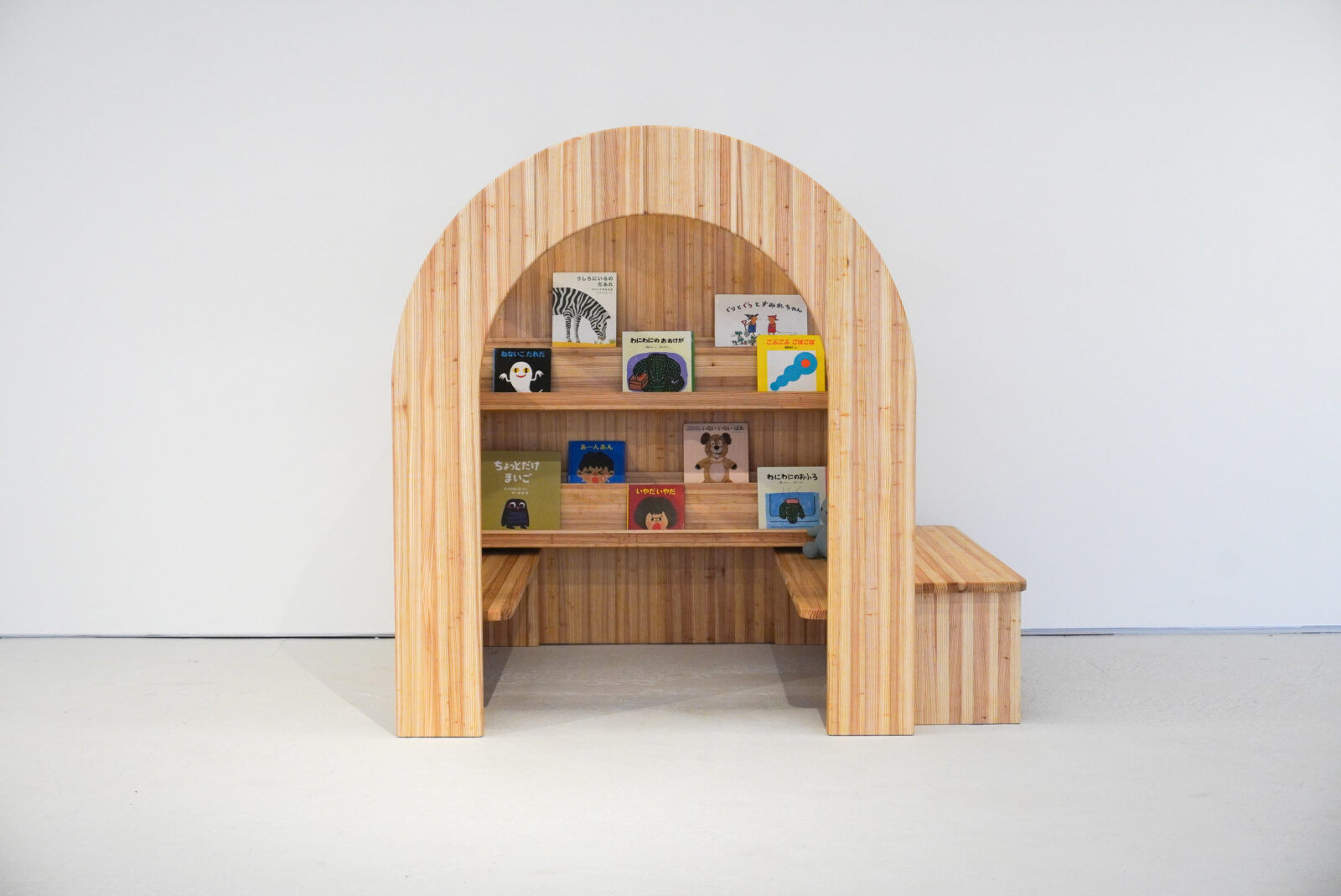 子どもたちが自然に集まって、絵本や木とふれあうきっかけになるような空間をイメージしてデザインしています。