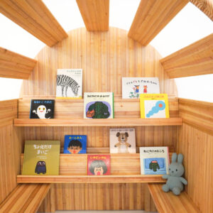 また、「絵本ドーム」の中だけでなく、外側のベンチに腰かけて読書を楽しむこともできます。天気の良い日には光が差し込む場所で心地よく本を開いたり、友達と一緒に座って絵本を読み合ったりと、使い方はさまざま。
