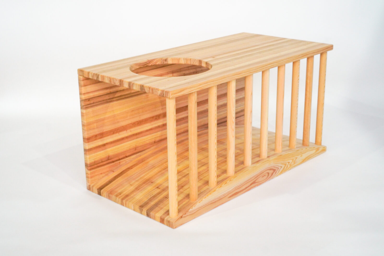 丸穴は、顔をのぞかせたり、通り抜けたりと遊びのきっかけをつくります。